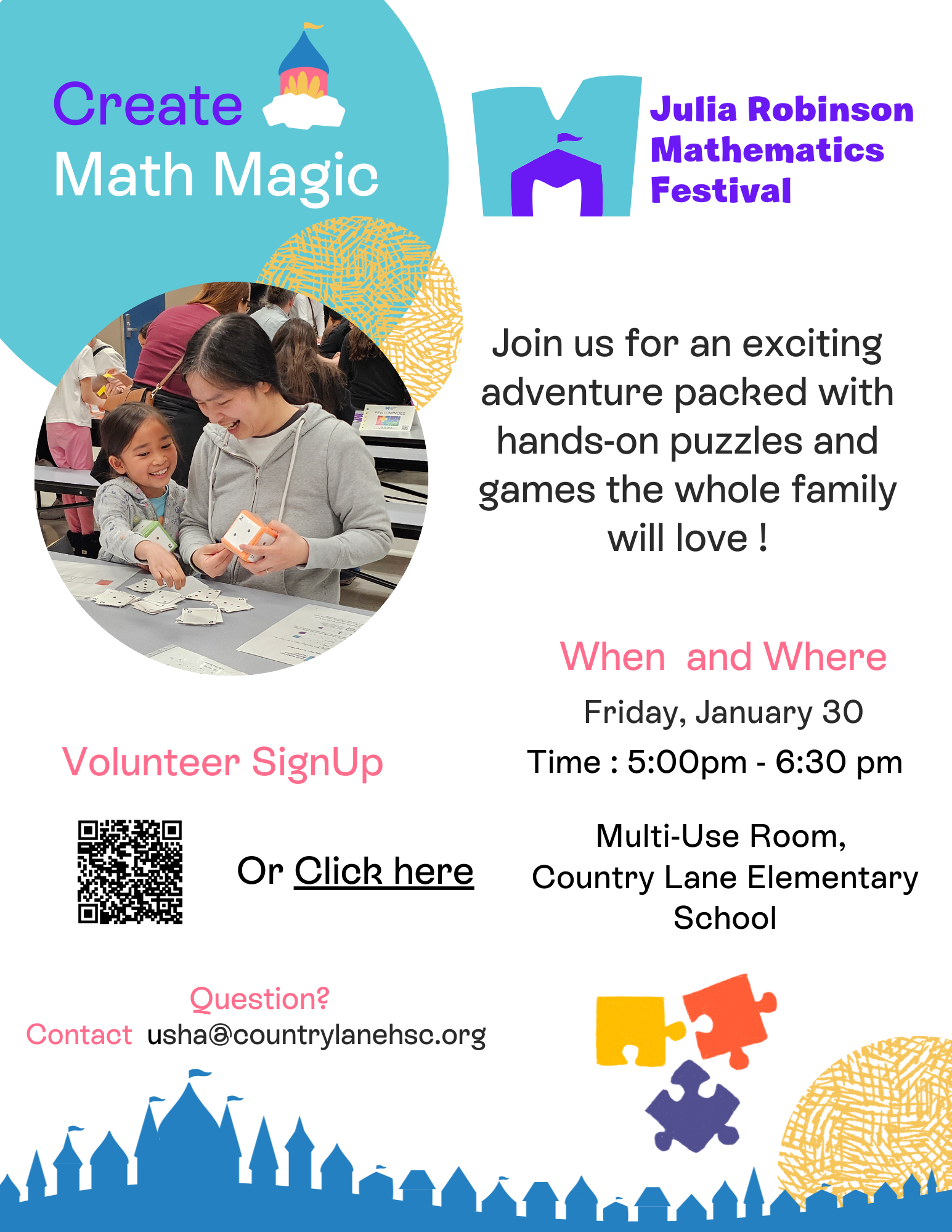 Mathematics Festival Join us on Friday, January 30, for a fun-filled mathematics festival. Click on the tittle for more information.